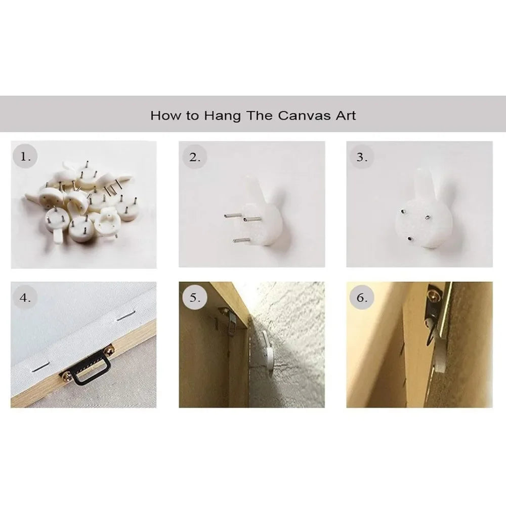 - Stretched and framed,ready to hang. A strong hook is already fixed on each wooden inner frame for easy hanging out of box.