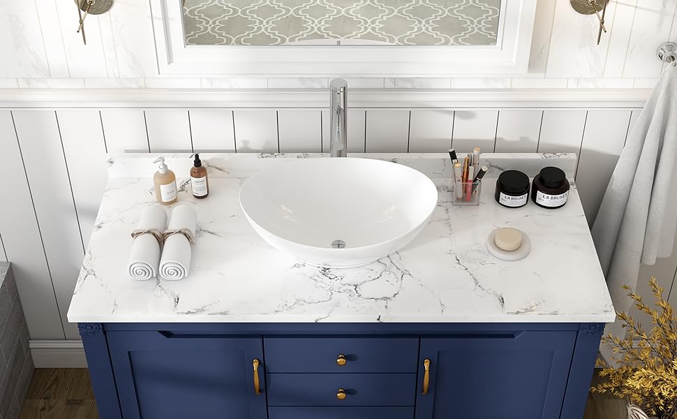 Elevate your bathroom aesthetic with our sophisticated white vessel sink. Designed to sit elegantly above your countertop, this rectangular/egg-shaped basin combines contemporary design with practical functionality. Crafted from premium materials, it offers durability while serving as a striking focal point in any modern bathroom renovation. Perfect for creating a custom, designer look without extensive remodeling.