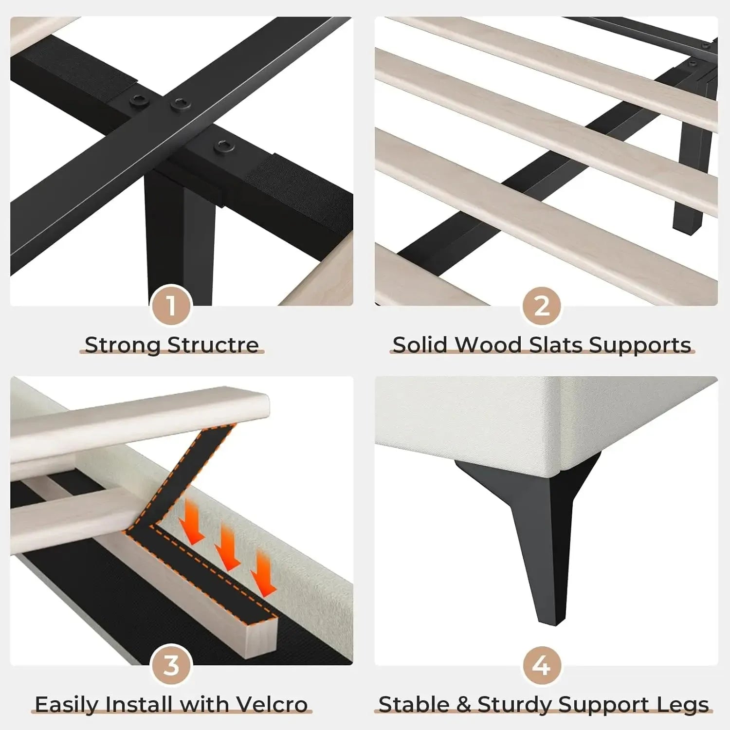 - Stable & Noise-free Platform Bed: The adjustable upholstered headboard platform bed frame is made of a sturdy steel frame with solid wooden slats and a no-slip pad of bed legs, ensuring durability and stability. Easily loading 800 lbs. No-noise design gives you a quiet sleeping environment.