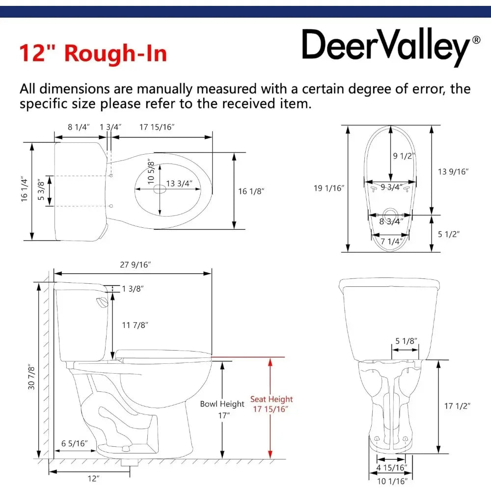 - ADA Toilet Height Seat: Our two-piece toilet is meticulously designed with a seat height of 17 15/16 inches from the floor, offering a more comfortable experience by reducing strain when sitting down or standing up.