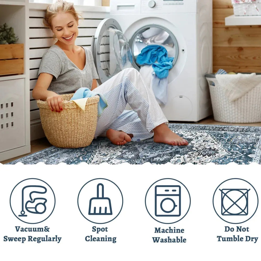 Elevate your living space with the washable area rug 8x10 featuring an elegant vintage medallion design. Crafted with low-pile construction for easy maintenance, this soft floor covering combines practicality with timeless style. The non-slip backing ensures safety, while the retro-inspired pattern adds sophisticated character to any room. Perfect for high-traffic areas where both durability and aesthetic appeal are essential. Washable 8x10 Area Rugs—Stylish, Durable & Easy to Clean